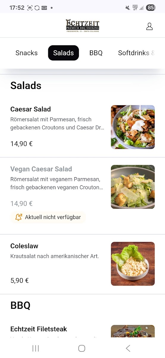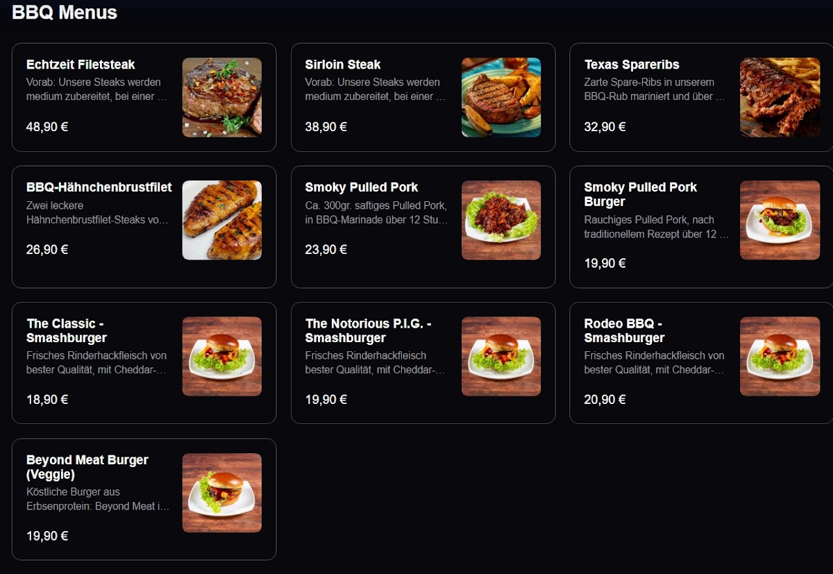 Echtzeit - Grill & Thrill Menu
